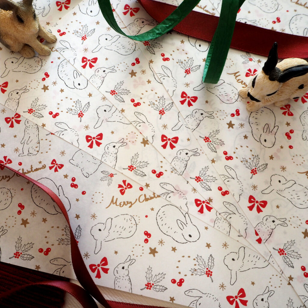 先日、新しいデザインペーパー「冬のうさぎとヒイラギのクリスマス柄」を撮影しました。